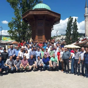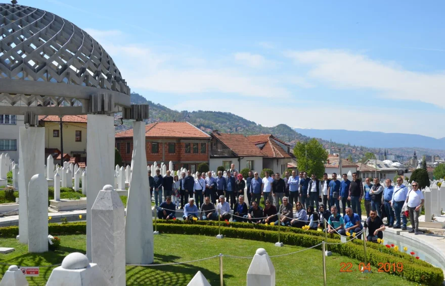 Uçaklı Balkan turu son gününde, Otelimizde alacağımız kahvaltımızın ardından saat 08.00 da otelimizden check out yaparak ayrılıyoruz. Başçarşı’ya doğru ilerliyoruz. Yolumuzun üzerinde halen savaş zamanı yapılan bombardımanın izleri bulunan binaları, Avrupa’nın ilk elektrik motorlu tramvay hattı olan ve Saraybosna’yı halen aktif olarak baştan başa dolaşan tramvay hattını, ABD’nin dünyanın en büyük ikinci büyükeçiliği binasını, Saraybosna şehir müzesi, Parlemento binası, İlk durağımız 1992-1995 yıllarında yaşanan hazin savaşın şehitleri ve Aliya Izetbegoviç’in anıt mezarının bulunduğu şehitlik. Savaş şehitlerine Fatiha okuyup rehberimiz tarafından Bosna Hersek’in ilk cumhurbaşkanı Alija Izetbegoviç ve hayatı hakkında bilgi alıyoruz. Ardından Osmanlı döneminden kalmayı başarabilmiş Arnavut kaldırımlı Boşnak – Türk mahallesinden geçerek Başçarşı yaya turumuza başlıyoruz. Turumuz esnasında göreceğimiz yerler ;