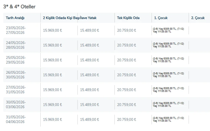 Not: Bu akşam otel konaklaması bulunmamaktadır.